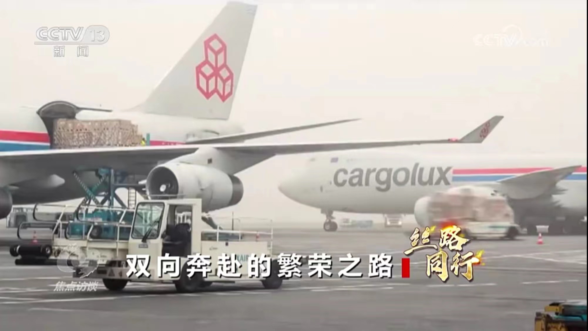 10月11日,央視《焦點訪談》播發(fā)系列報道“絲路同行”第一集——雙向奔赴的繁榮之路。報道中說,“一帶一路”倡議的提出,讓河南明確了突破區(qū)位限制、向藍天要效益的開放思路。通過采訪河南航投集團黨委書記、董事長張明超和盧森堡貨航董事會主席湯姆·維斯格伯、總裁兼CEO理查德·福森,報道回顧了鄭盧“空中絲綢之路”十年探索實踐和豫盧之間的友好情誼。節(jié)目評論道:“(河南航投與盧森堡貨航)之間早已超越了生意伙伴這一簡單的關系,多年的合作讓鄭州與盧森堡兩個航空樞紐之間的互聯(lián)互通真正實現(xiàn)了彼此雙方互利共贏和美美與共。這一切都在詮釋著‘一帶一路’倡議的核心要義?!?