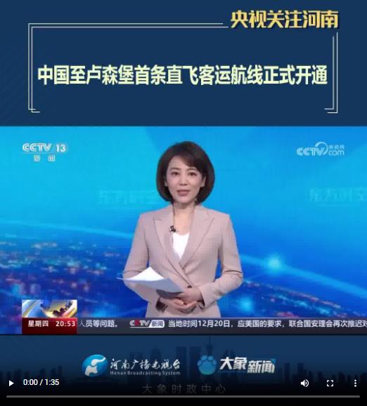 【央視關(guān)注河南】中國(guó)至盧森堡首條直飛客運(yùn)航線正式開(kāi)通