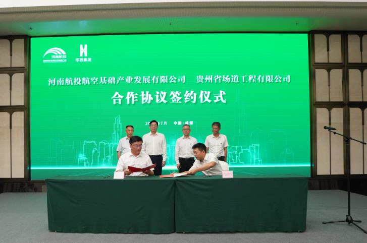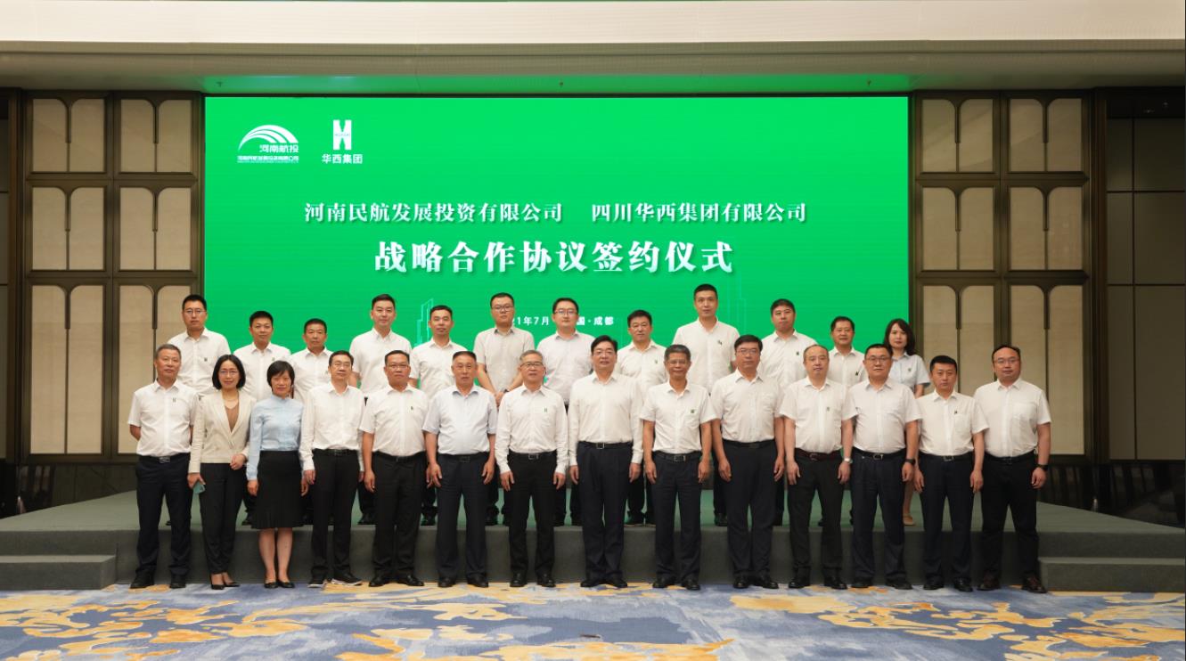 7月16日,河南民航發(fā)展投資有限公司(簡稱河南航投)與四川華西集團有限公司(簡稱四川華西)在成都舉行了簡短而熱烈的簽約儀式,兩家跨省國企約定,在民航產業(yè)展開全面合作。河南航投黨委書記、董事長張明超,黨委副書記、總經理、副董事長劉建葆,四川華西黨委書記、董事長楊斌,黨委副書記、總經理、副董事長馬林出席。張明超、楊斌分別致辭,劉建葆、馬林代表雙方簽訂《戰(zhàn)略合作協議》,河南航投基礎產業(yè)公司董事長趙楠和貴州場道公司執(zhí)行董事劉國呈代表子公司簽訂《合資合作協議》。