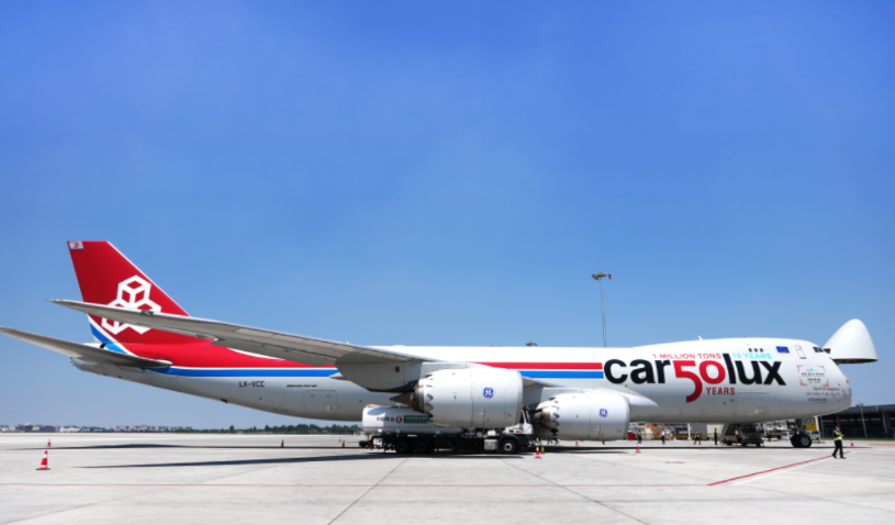 這架被命名“鄭盧空中絲綢之路號”的寬體貨機(jī),編號為LX-VCC?!癦hengzhou-Luxembourg”與“AIR SILK ROAD”的英文標(biāo)識,以疊加式設(shè)計(jì)炫然機(jī)首,配以中國風(fēng)的紅色邊飾,整體圖案溫婉靚麗。