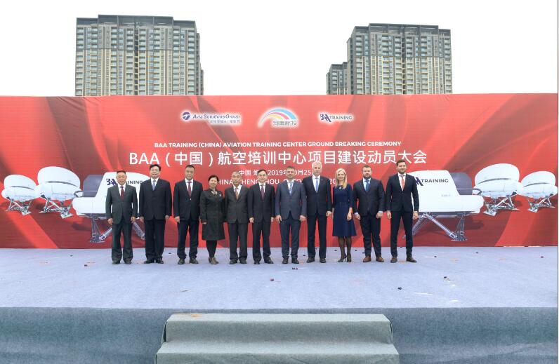 10月25日上午,BAA(中國(guó))航空培訓(xùn)中心項(xiàng)目建設(shè)動(dòng)員大會(huì)在航空港區(qū)舉行。隨著第一鍬土填入基坑,中原首家航空培訓(xùn)中心正式開(kāi)工建設(shè)。該項(xiàng)目填補(bǔ)了河南省航空培訓(xùn)產(chǎn)業(yè)的空白,進(jìn)一步完善了河南民航產(chǎn)業(yè)鏈條。省外事辦、省財(cái)政廳、鄭州航空港實(shí)驗(yàn)區(qū)管委會(huì)相關(guān)領(lǐng)導(dǎo),河南航投黨委書記、董事長(zhǎng)張明超,總經(jīng)理、黨委副書記、副董事長(zhǎng)劉建葆;立陶宛阿維亞解決方案集團(tuán)董事長(zhǎng)格迪米納斯,立陶宛阿維亞解決方案集團(tuán)董事維加烏達(dá)斯,立陶宛B(yǎng)AA Training總經(jīng)理艾格,阿維亞融資租賃(中國(guó))有限公司總經(jīng)理托馬斯,BAA(中國(guó))航空培訓(xùn)中心總經(jīng)理奧維馬斯共同為項(xiàng)目培土奠基。