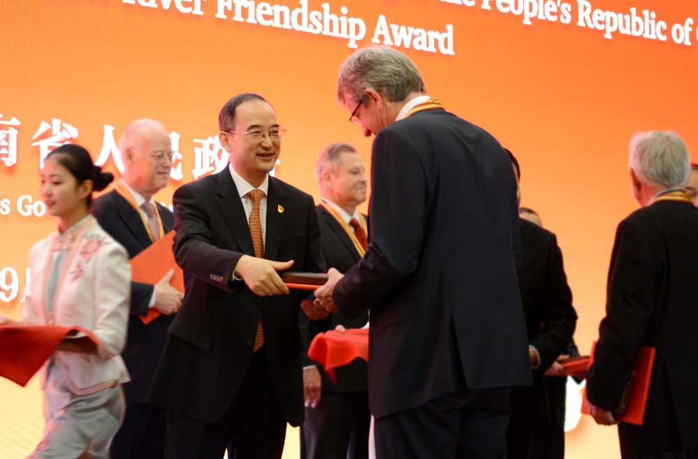 省委、省人大、省政府、省政協(xié)有關(guān)部門負(fù)責(zé)同志,華僑華人、港澳臺(tái)同胞代表等參加招待會(huì)。據(jù)悉,“黃河友誼獎(jiǎng)”是省政府為表彰對(duì)河南經(jīng)濟(jì)發(fā)展和社會(huì)進(jìn)步作出突出貢獻(xiàn)的國際友人、外籍專家、海外華人華僑和港澳知名人士而設(shè)立的最高榮譽(yù)獎(jiǎng)。自2000年起,省政府已先后為109人頒發(fā)了此獎(jiǎng)。