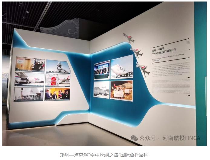 這一主題展板上,精選了10張圖片記錄豫盧共建“空中絲路”的關鍵事件。既有2014年河南航投與盧森堡貨航在鄭州簽署股權合作協(xié)議、“鄭州號”巨無霸貨機首次抵鄭的起始節(jié)點;也有這條絲路承運河南省向盧方捐贈的抗疫物資、鄭盧直飛客航首批旅客抵達的溫暖瞬間;還有盧森堡貨航在鄭州加注可持續(xù)航空燃料、鄭盧航線貨運量突破100萬噸的喜慶時刻,精彩講述豫盧雙方在“一帶一路”框架下相融互促,從硬聯(lián)通、軟聯(lián)通到心聯(lián)通的生動實踐。